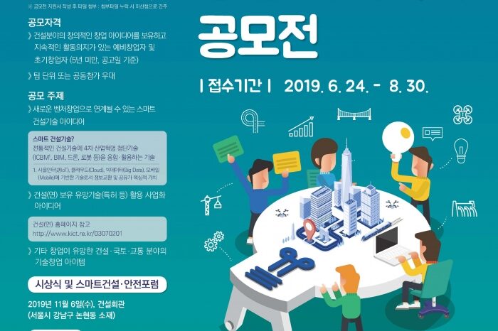 한국건설기술연구원(이하 건설연)은 제2회 ‘2019 스마트건설 창업아이디어 공모전’을 개최하였습니다. 공모전은 국토교통부가 주최하는 ‘2019년 스마트 건설기술·안전대전’의 일환으로 추진되었으며.…